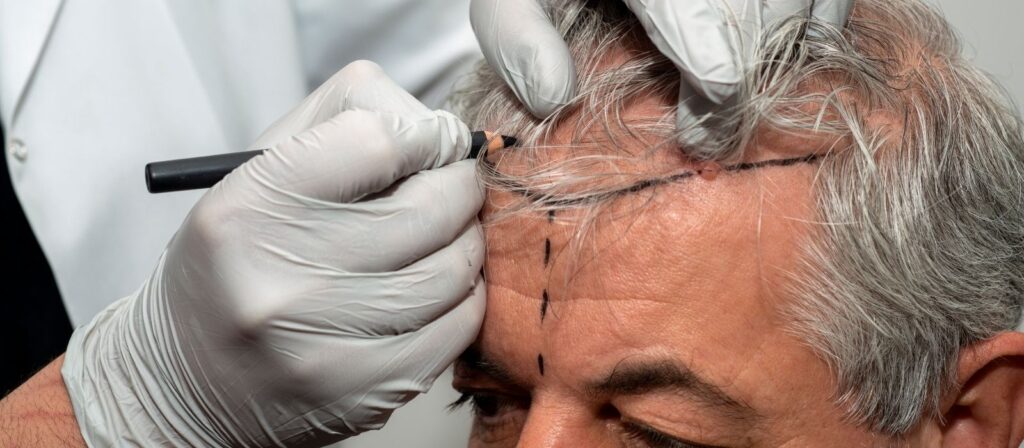 The hair transplant method is determined, areas for transplant and hairline are planned.